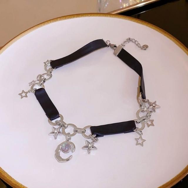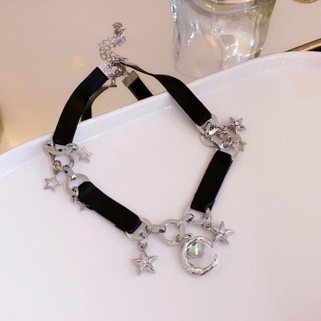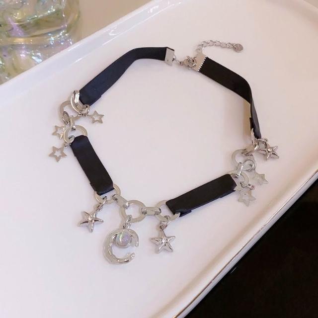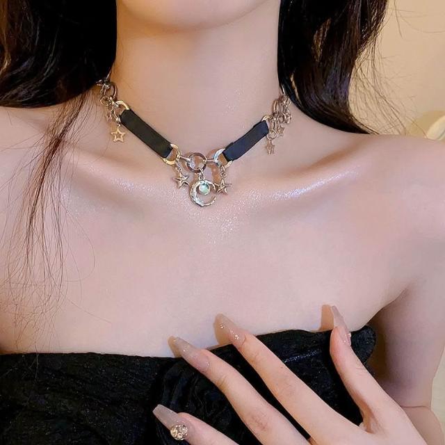 Fortune皮革星星鏤空項鍊暗黑風月亮吊墜辣妹個性鎖骨鏈2026新款頸鍊頸飾