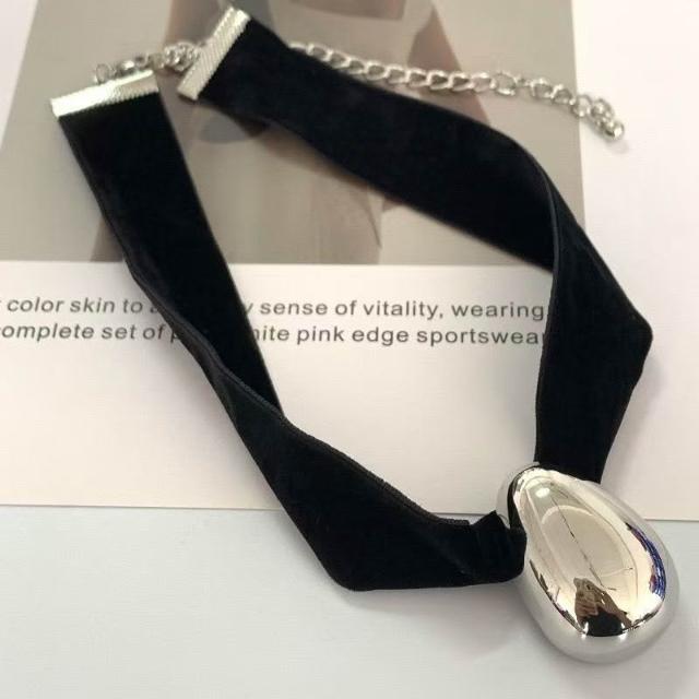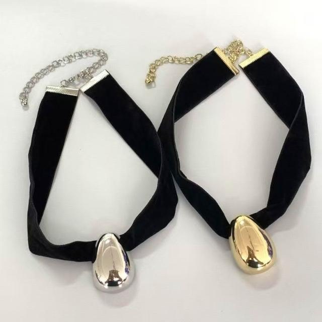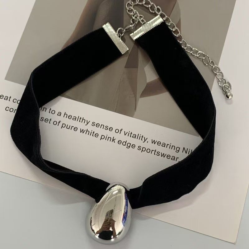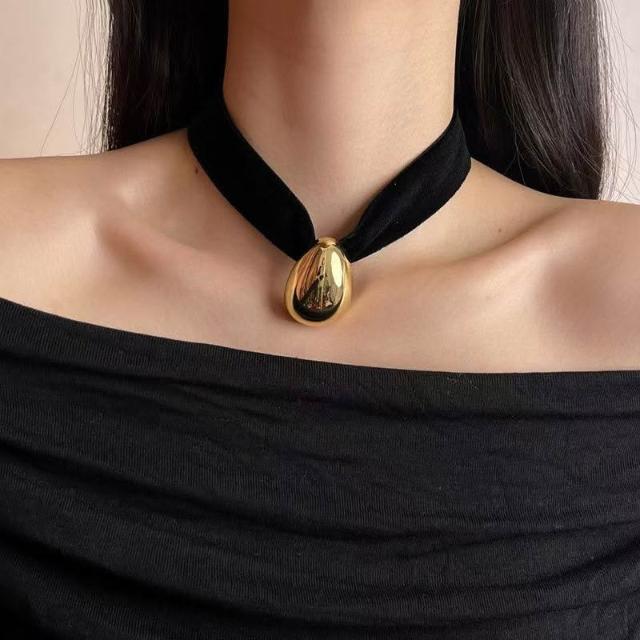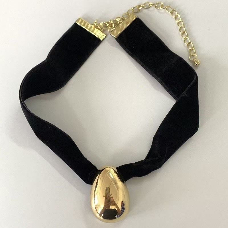 Fortune法式復古黑色寬絲絨choker項圈蛋型水滴吊墜項鍊輕奢高級感頸鍊女
