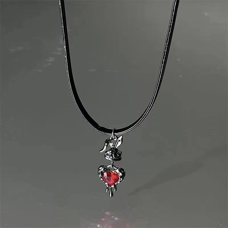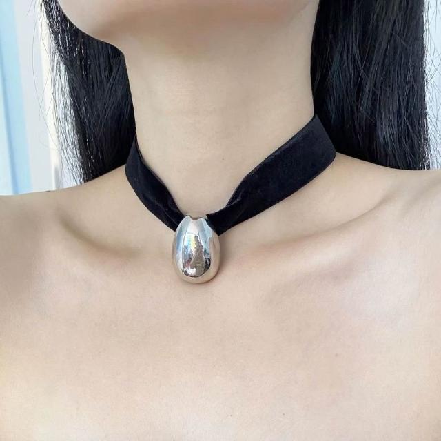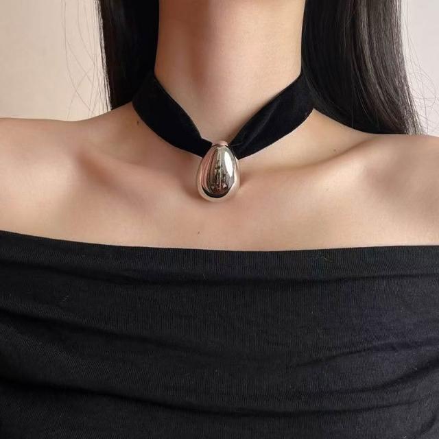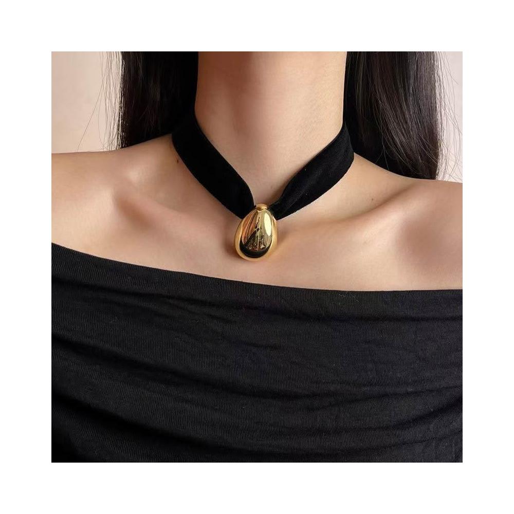 Fortune法式復古黑色寬絲絨choker項圈蛋型水滴吊墜項鍊輕奢高級感頸鍊女