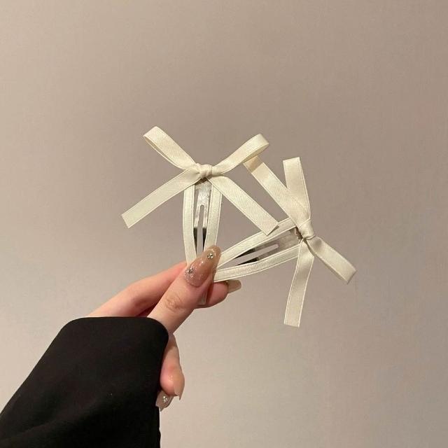 Fortune法式芭蕾風蝴蝶結粉色絲帶髮夾女韓系甜美髮卡劉海側邊夾髮飾頭飾