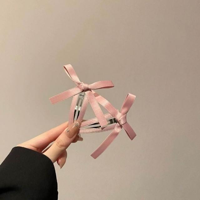 Fortune法式芭蕾風蝴蝶結粉色絲帶髮夾女韓系甜美髮卡劉海側邊夾髮飾頭飾