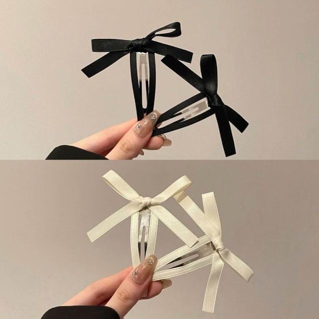 Fortune法式芭蕾風蝴蝶結粉色絲帶髮夾女韓系甜美髮卡劉海側邊夾髮飾頭飾