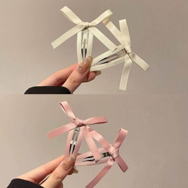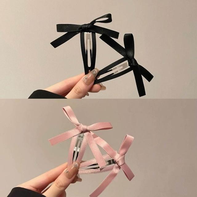 Fortune法式芭蕾風蝴蝶結粉色絲帶髮夾女韓系甜美髮卡劉海側邊夾髮飾頭飾