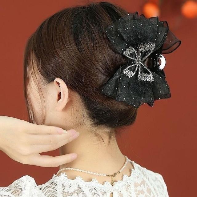 Fortune高級新款蝴蝶蝴蝶結水鑽後腦勺盤發雙面鯊魚髮飾髮卡髮夾