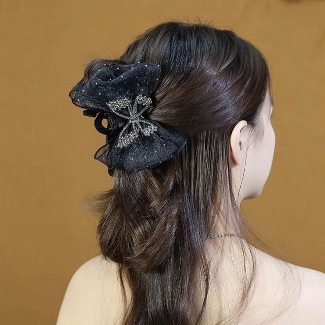 Fortune高級新款蝴蝶蝴蝶結水鑽後腦勺盤發雙面鯊魚髮飾髮卡髮夾