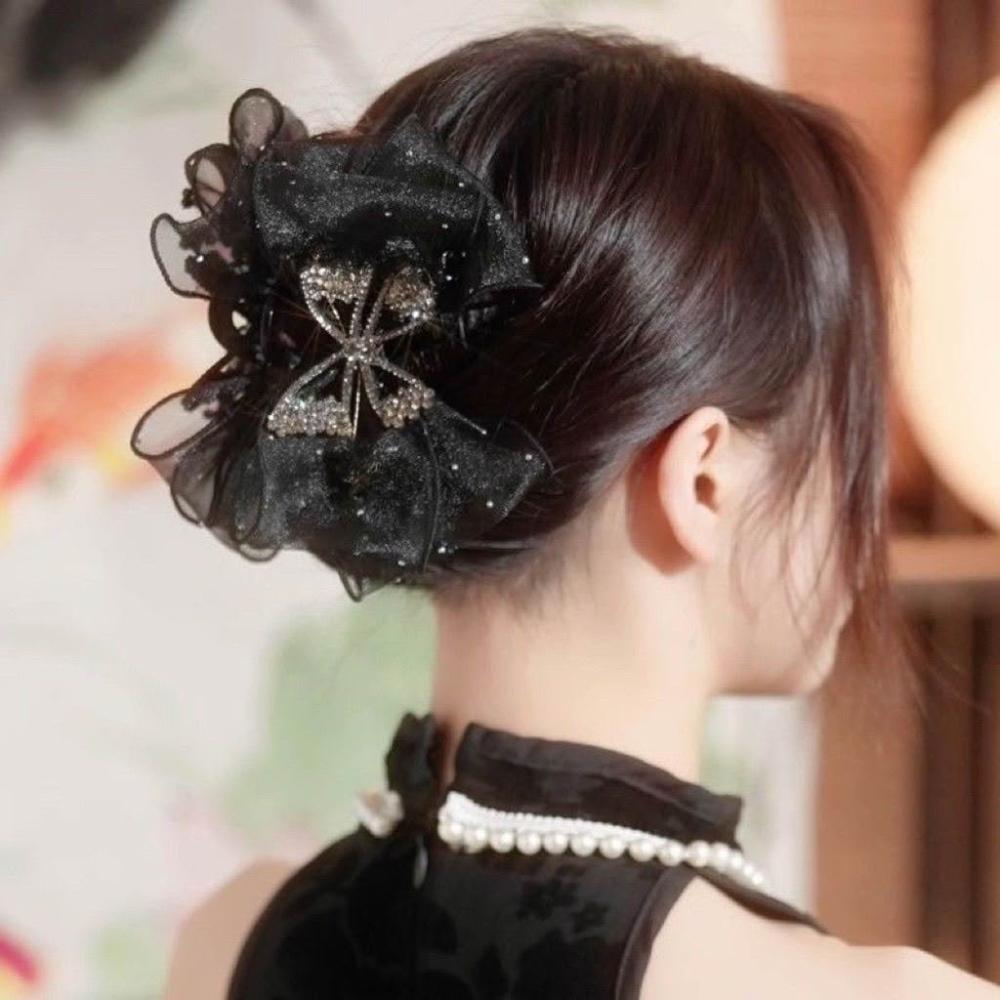 Fortune高級新款蝴蝶蝴蝶結水鑽後腦勺盤發雙面鯊魚髮飾髮卡髮夾