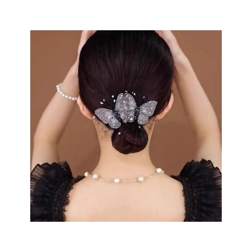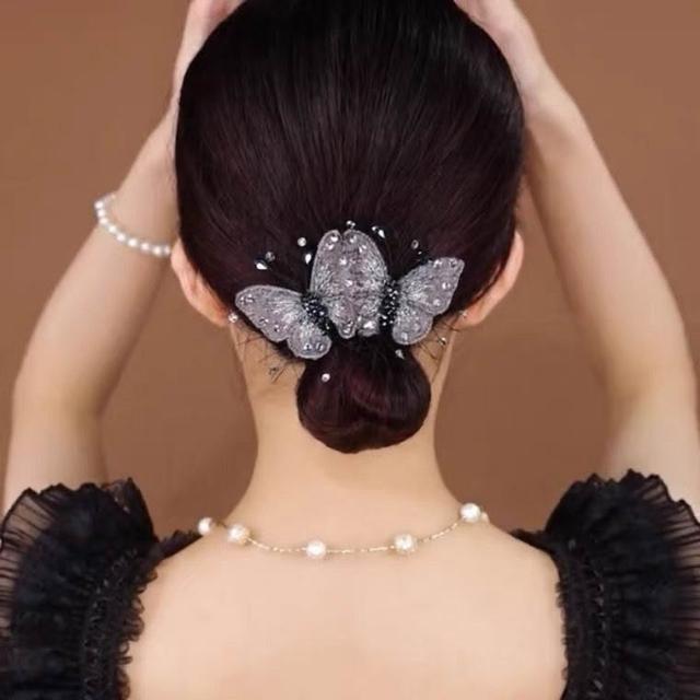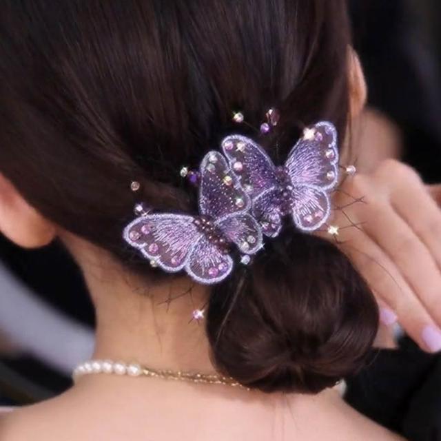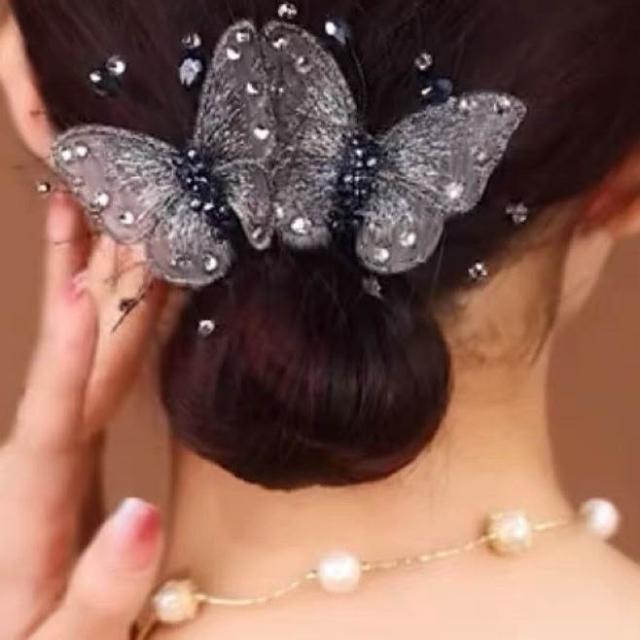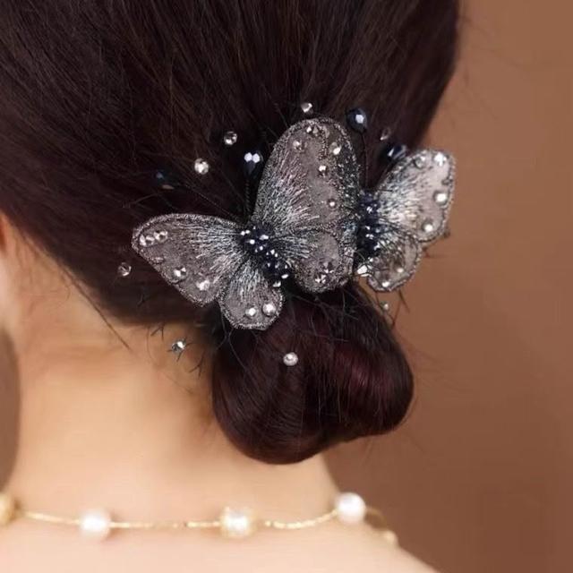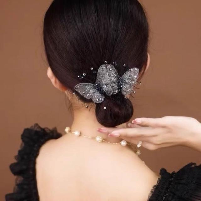 Fortune鉑亞同款輕奢橫夾洋氣網紗蝴蝶一字夾優雅夫人閃鑽氣質彈簧夾女