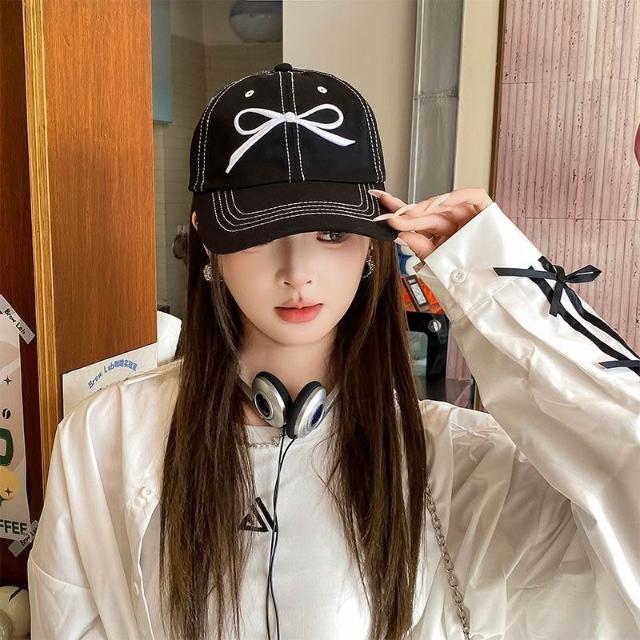 Fortune春夏季學生戶外百搭蝴蝶結黑色棒球帽軟頂休閒遮陽帽子女