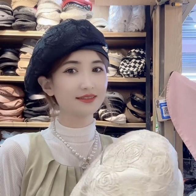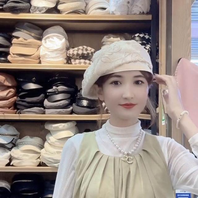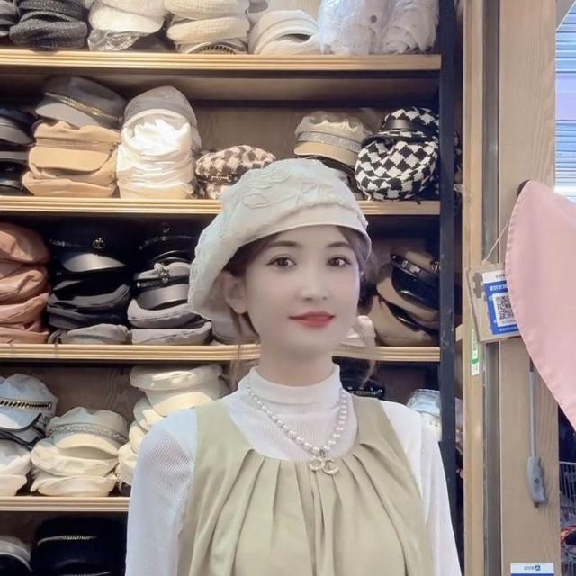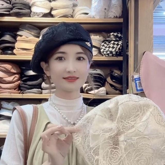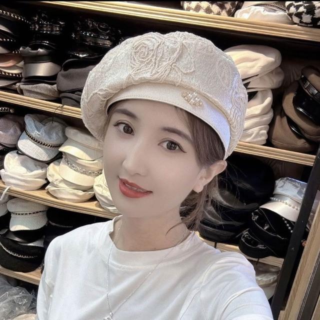 Fortune貝雷帽女蕾絲夏季新款薄款日系復古蓓蕾亮片透氣花朵畫家時尚百搭