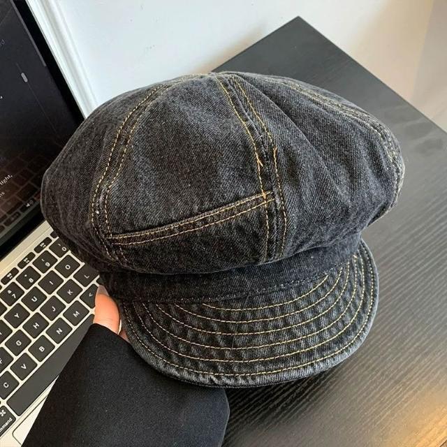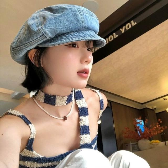 Fortune復古牛仔雲朵貝雷帽女春夏2025新款文藝風報童帽子薄款百搭八角帽
