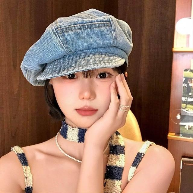 Fortune復古牛仔雲朵貝雷帽女春夏2025新款文藝風報童帽子薄款百搭八角帽