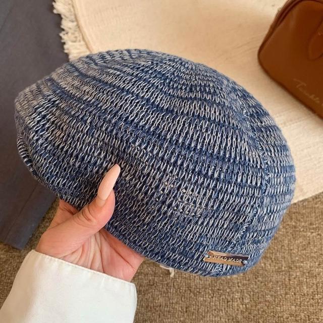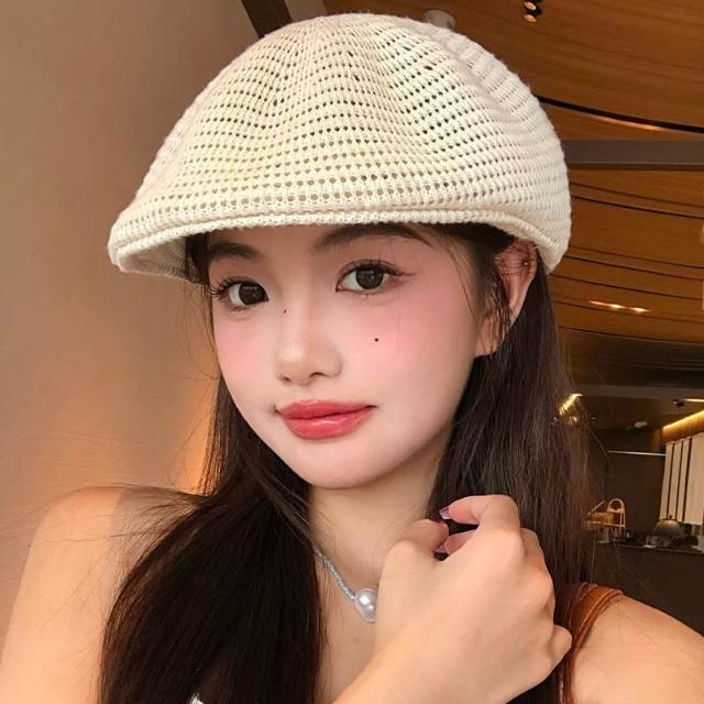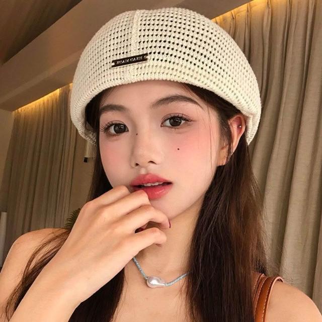 Fortune日系純色針織貝雷帽女夏季薄款透氣大頭圍顯臉小文藝百搭畫家帽子