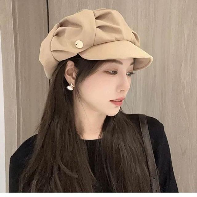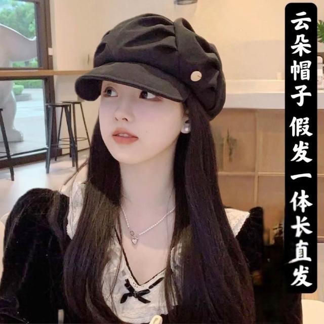 Fortune新款雲朵帽子女假髮一體女長直髮褶皺八角帽顯臉小假髮帽休閒百搭
