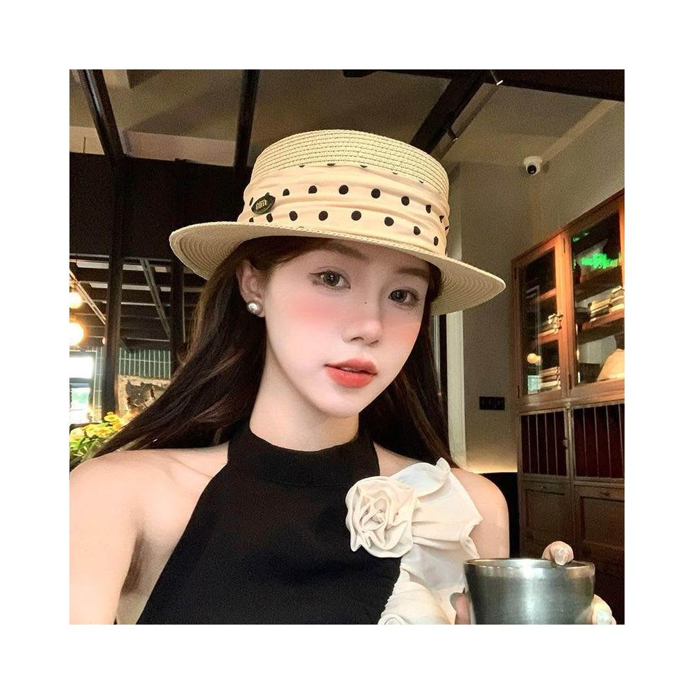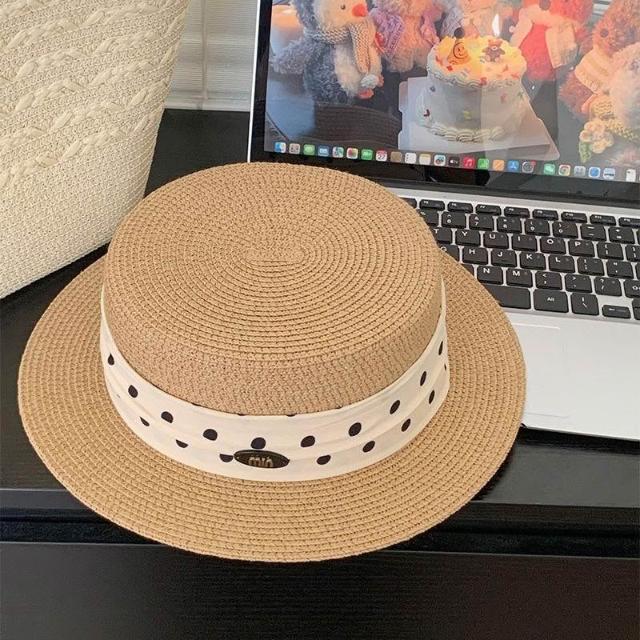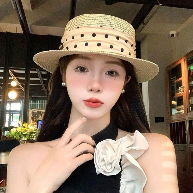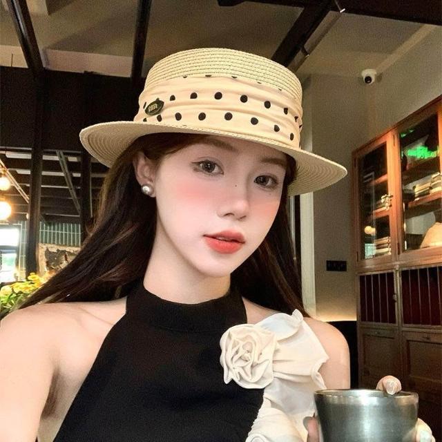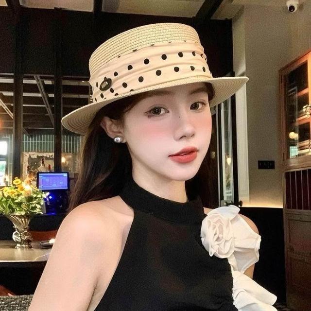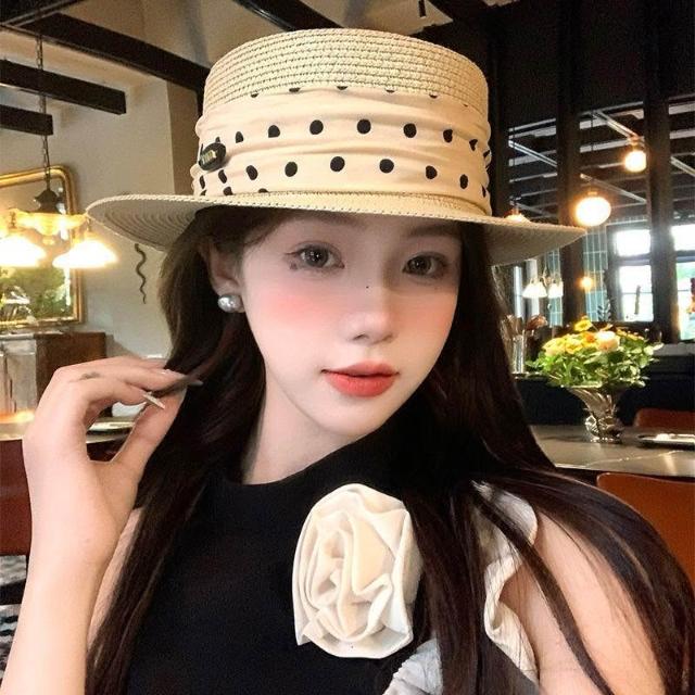 Fortune法式平頂拉菲草帽女夏度假風大帽檐時尚禮帽草編防曬遮陽太陽帽子