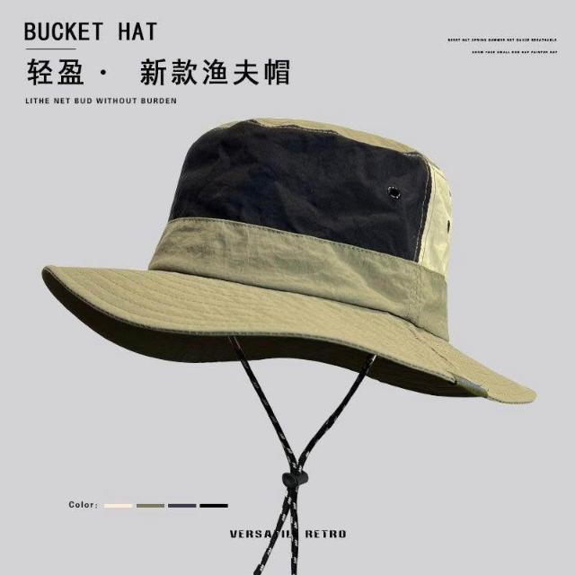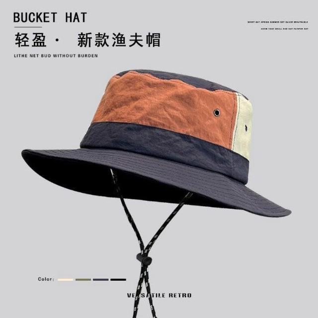 Fortune韓版夏季盆帽漁夫帽休閒菱格可摺疊戶外透氣遮陽帽速幹登山防曬