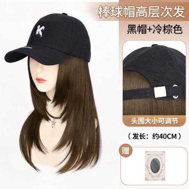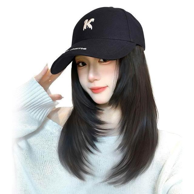 Fortune棒球帽假髮女新款一體式仿真高層次中長髮可扎可散全頭套假髮帽子