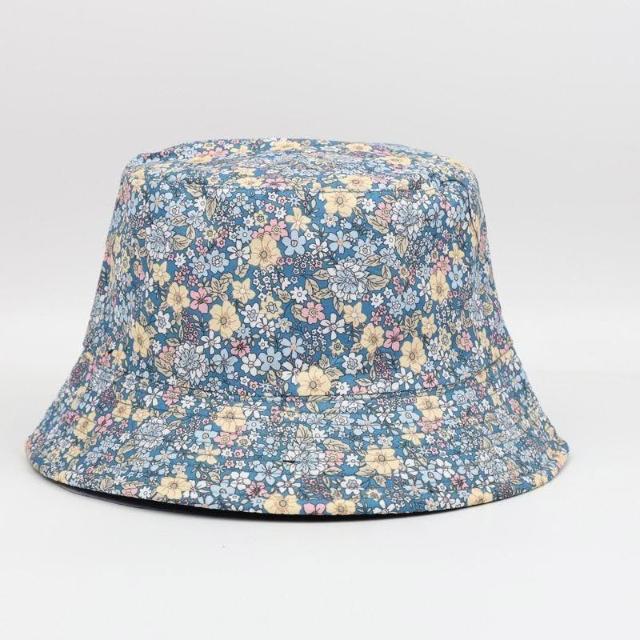 Fortune新款小菊花印花雙面戴漁夫帽春夏天戶外遮陽帽女休閒盆帽防曬遮陽