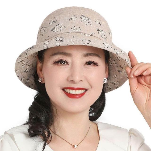 Fortune媽媽帽子女春秋遮陽漁夫帽中老年人休閒布帽夏天老人奶奶盆帽薄款