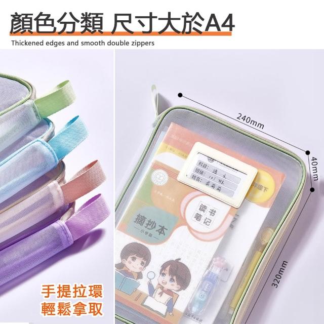 文件收納袋 資料袋 透明收納袋 A4收納袋 書本收納袋 文件袋 文件分類收納袋 拉鏈收納袋 網紗收納袋