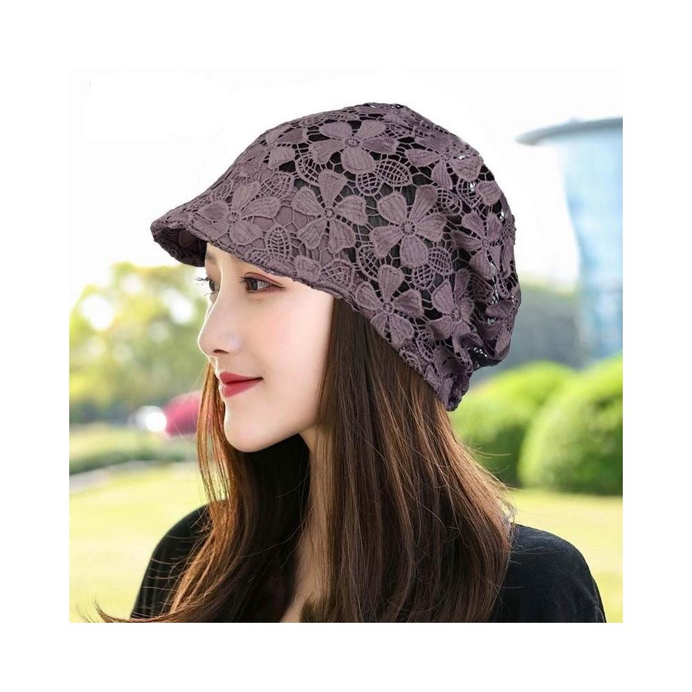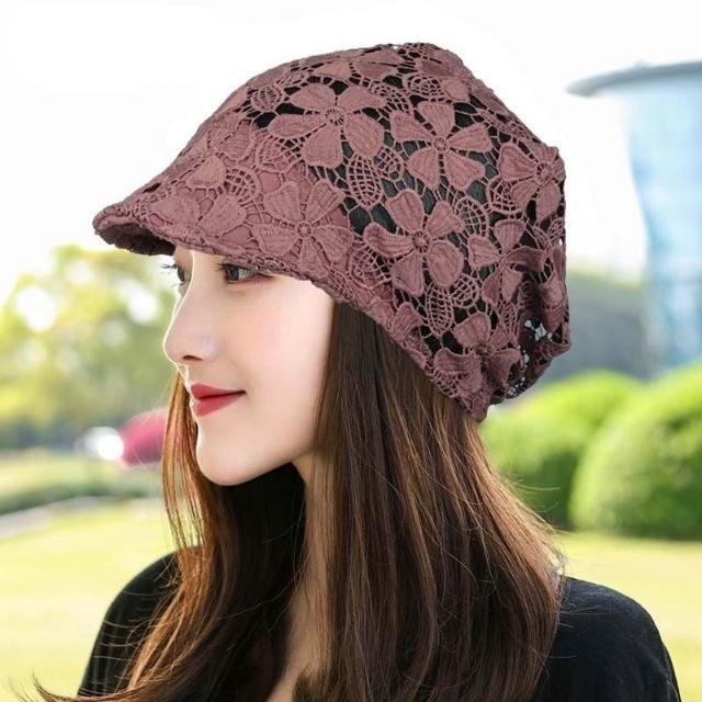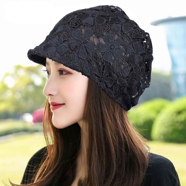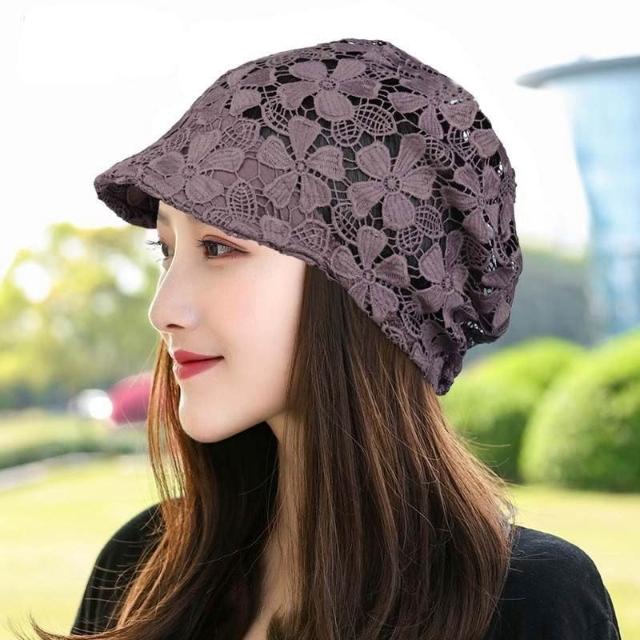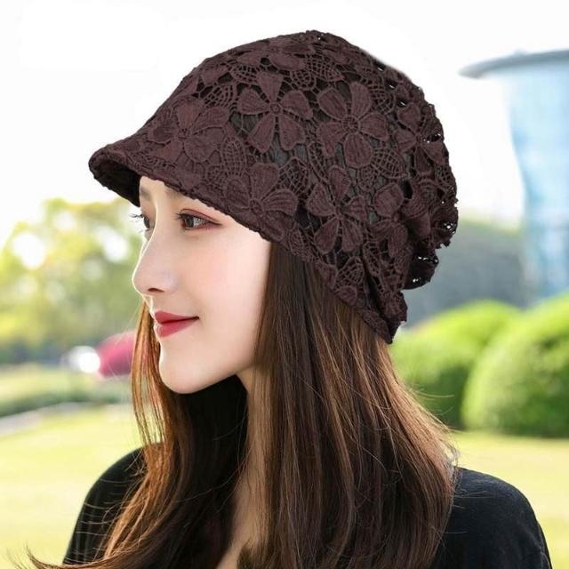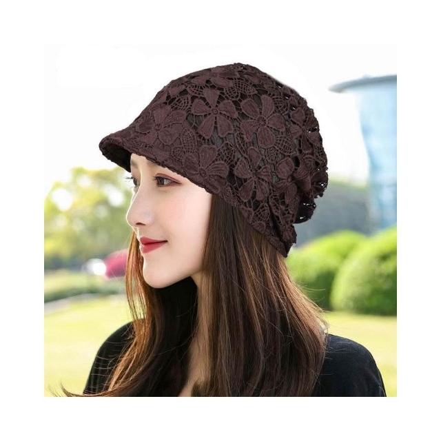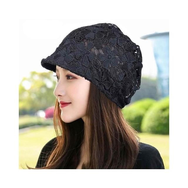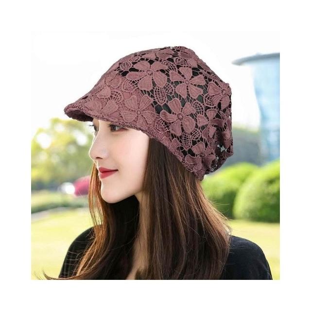 Imanchen🌞春夏鏤空帽子女單層無襯鴨舌堆堆帽洋氣花朵帽飾柔軟遮白髮頭巾帽優質