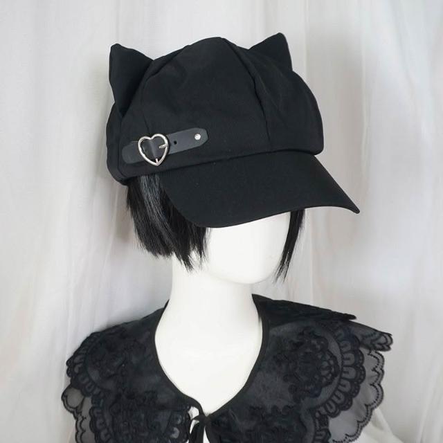 Imanchen貓耳朵鴨舌帽星星愛心皮扣亞文化地雷系宅系可愛二次元帽子女