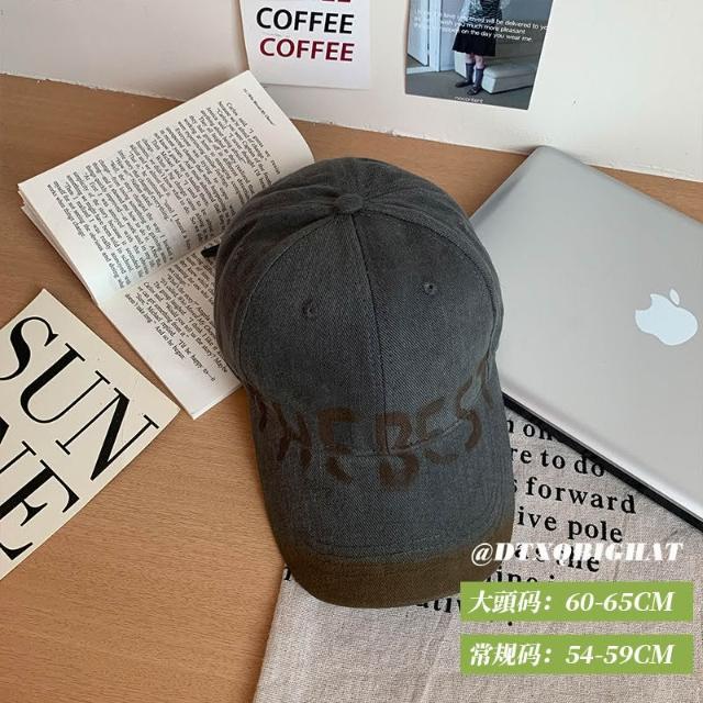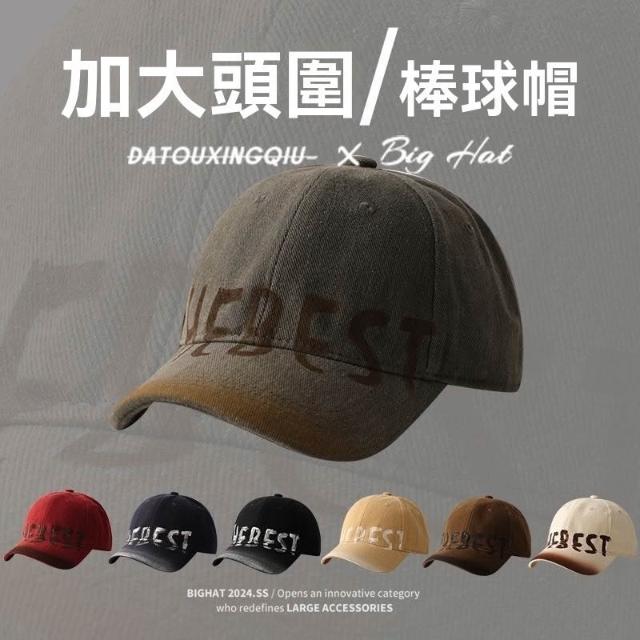 Imanchen大頭星球美式復古棒球帽男款灰色鴨舌帽做舊新款顯臉小大頭圍加寬