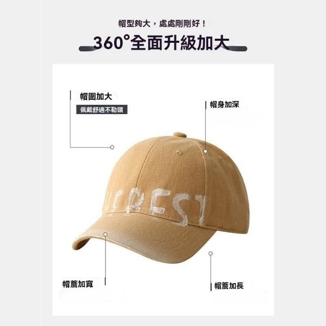 Imanchen大頭星球美式復古棒球帽男款灰色鴨舌帽做舊新款顯臉小大頭圍加寬
