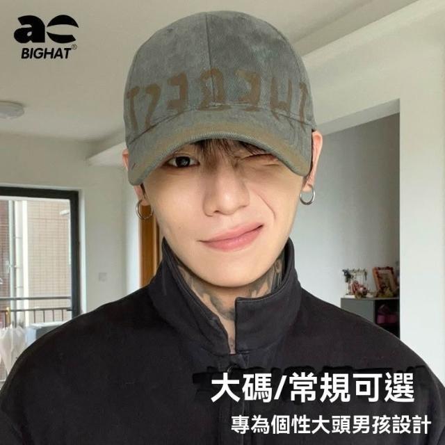 Imanchen大頭星球美式復古棒球帽男款灰色鴨舌帽做舊新款顯臉小大頭圍加寬