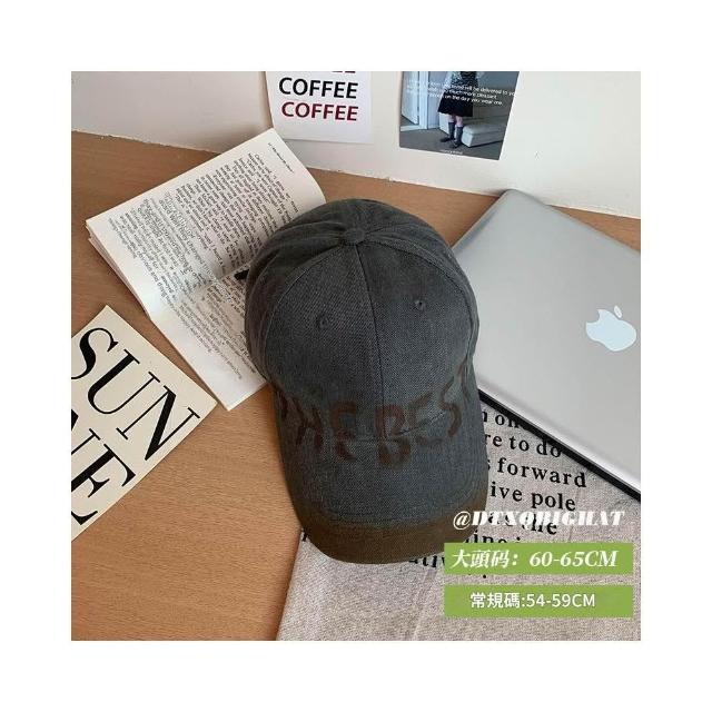 Imanchen大頭星球美式復古棒球帽男款灰色鴨舌帽做舊新款顯臉小大頭圍加寬