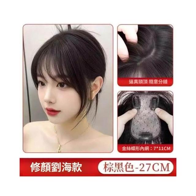 Imanchen全真髮片 遮白髪頭頂假髮片 補髮片 自然前額 空氣瀏海 蓬鬆增髮量補髮塊自然無痕遮白髮神器輕薄遞針補髮片