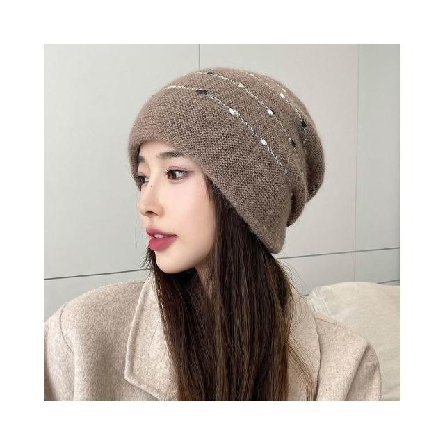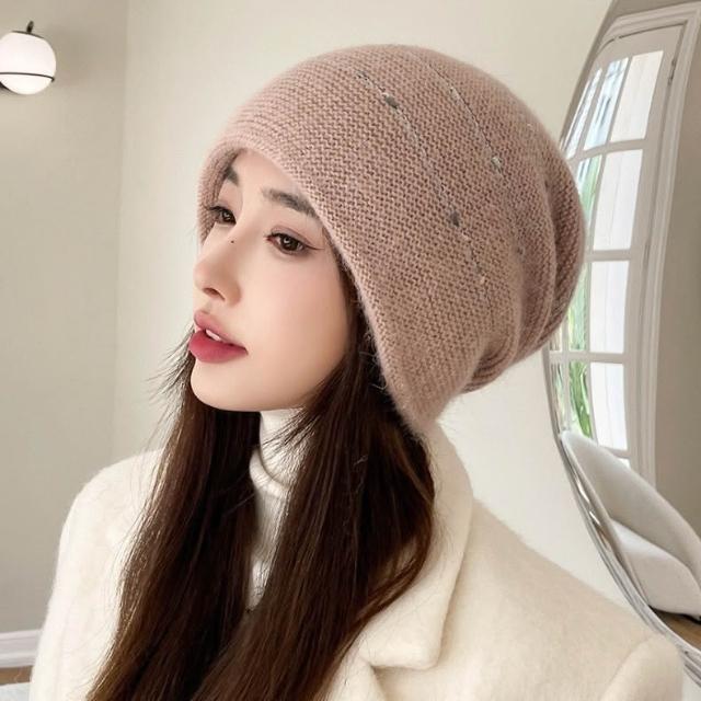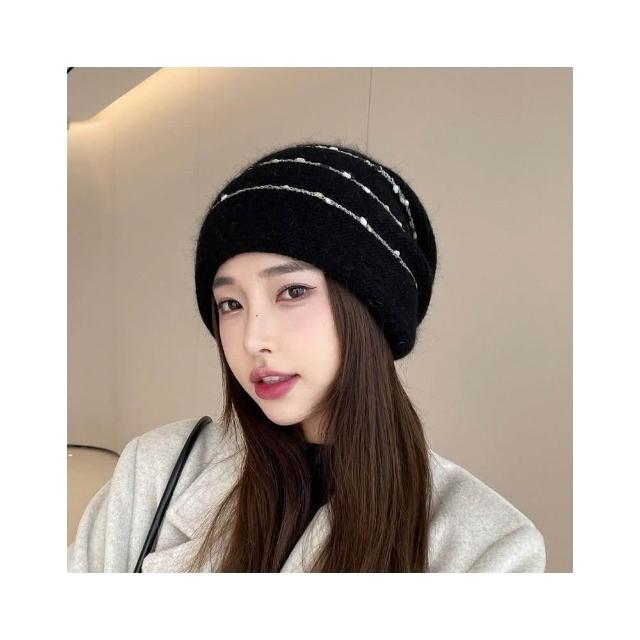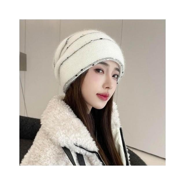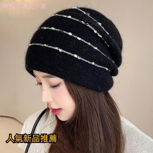 加絨加厚兔毛針織堆堆帽 秋冬新款跳線針織帽 加絨加厚毛線帽 毛帽 女帽 女帽子 女