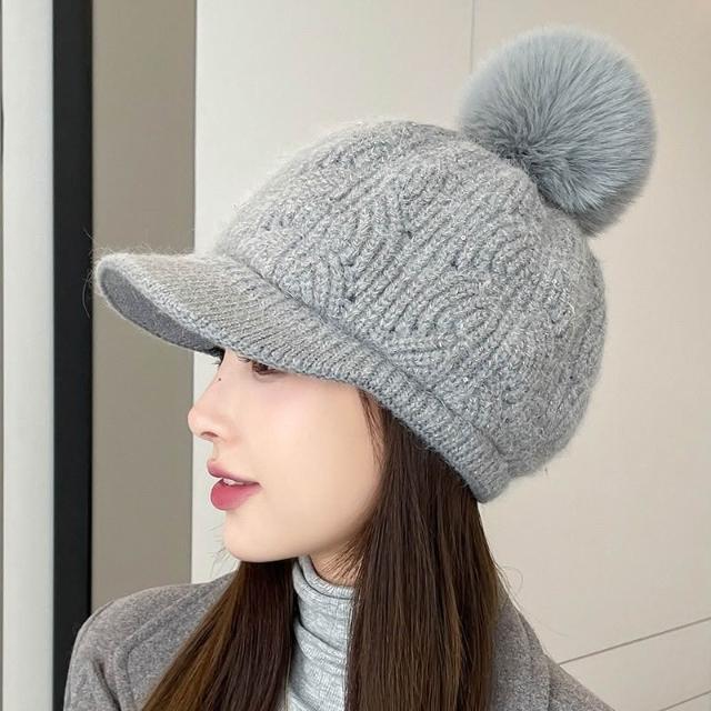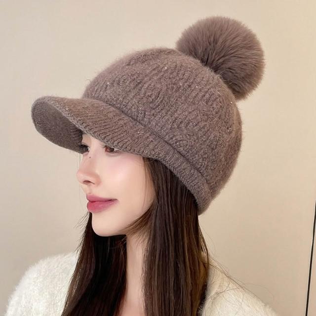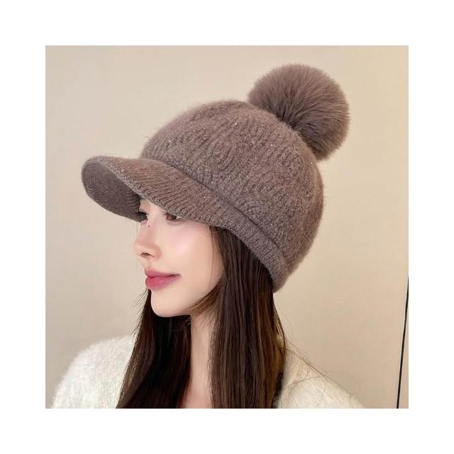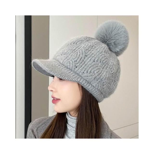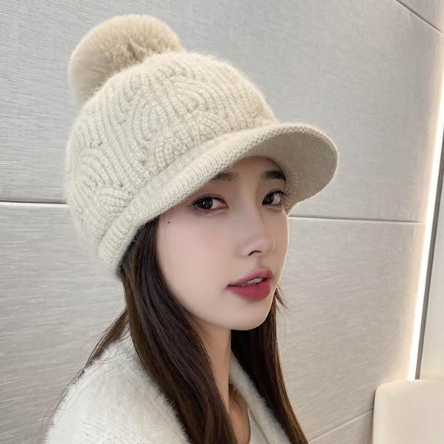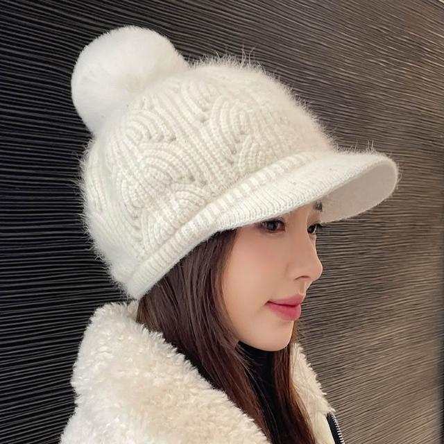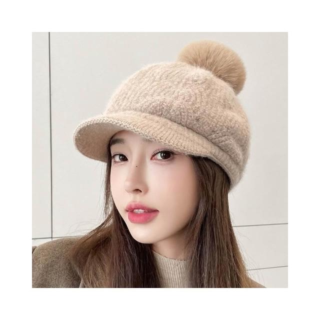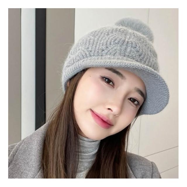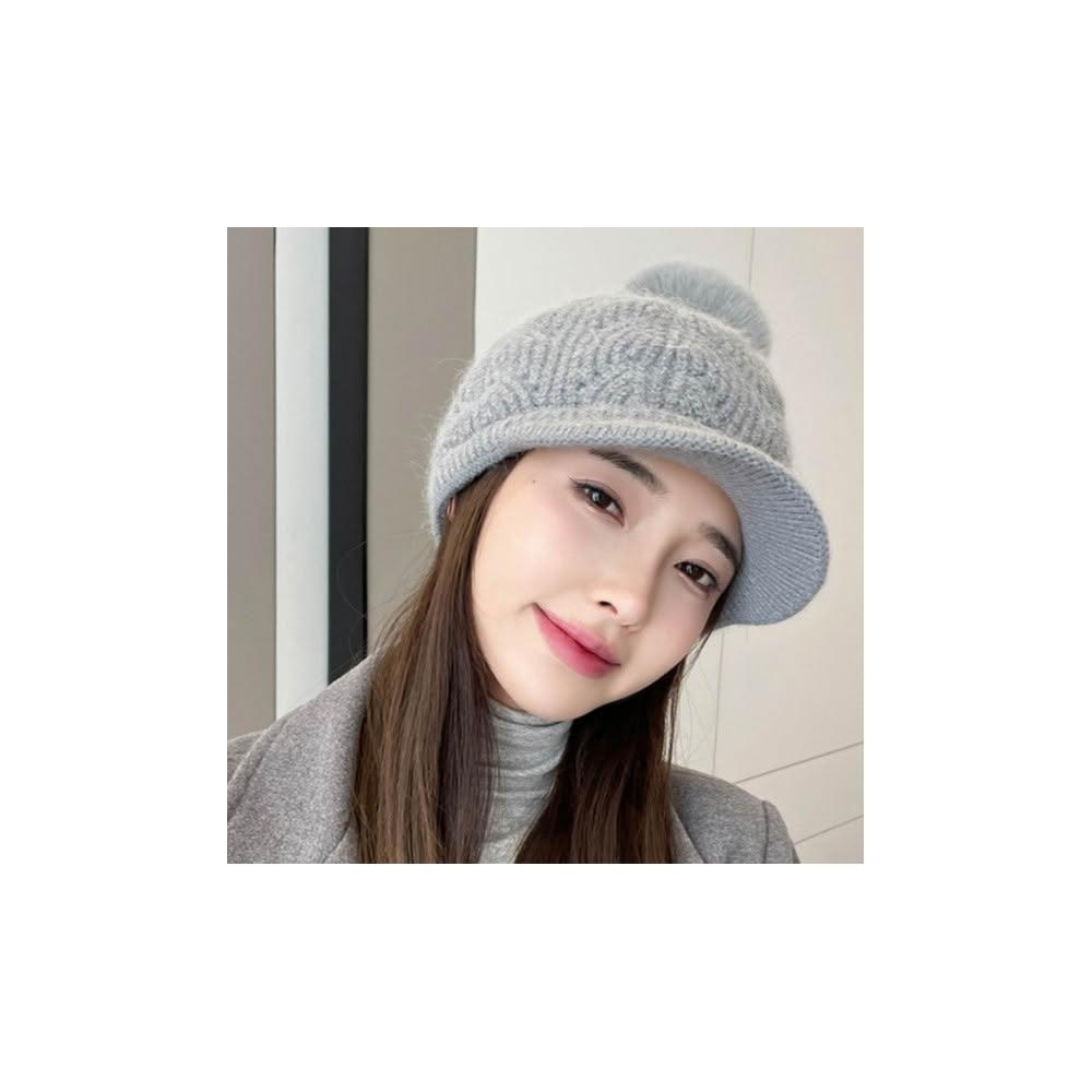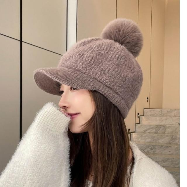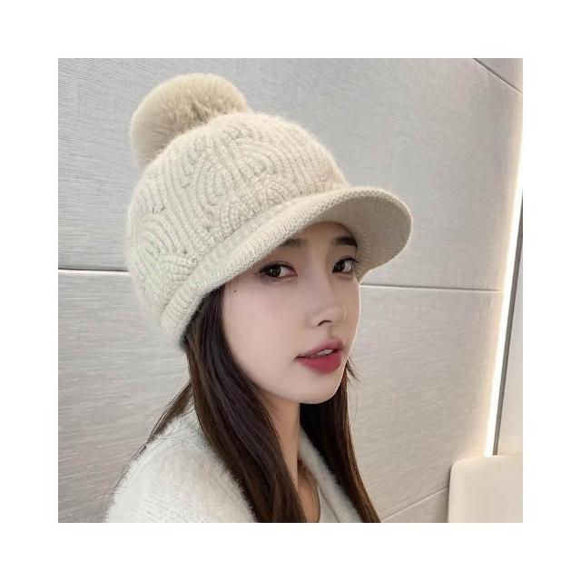 冬天棒球帽兔毛帽子女冬天護耳加絨盆帽户外保暖針織帽 毛線帽 d0007