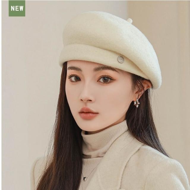 Imanchen秋冬韓版羊毛貝雷帽子時尚畫家帽英倫復古蓓蕾帽 d0025