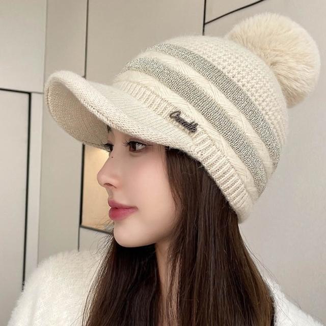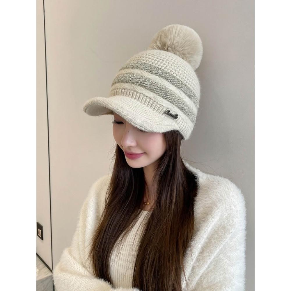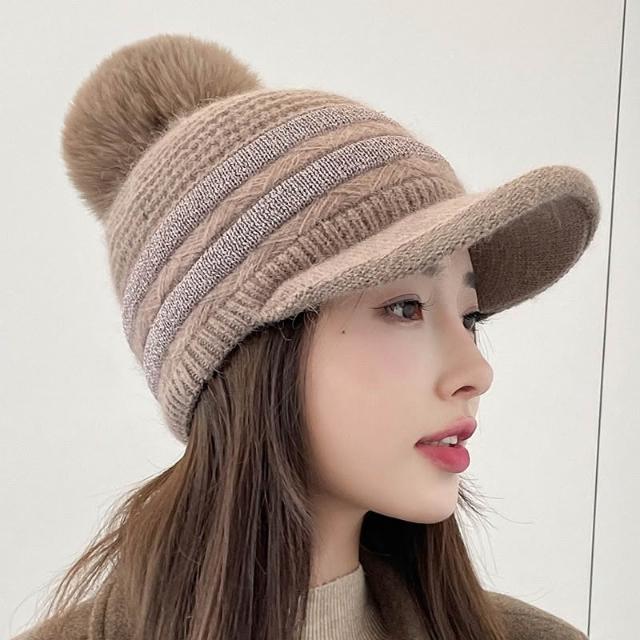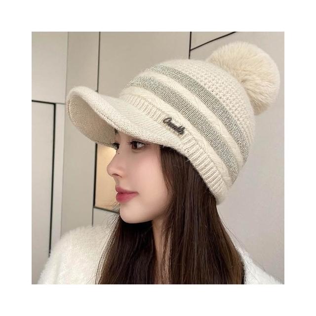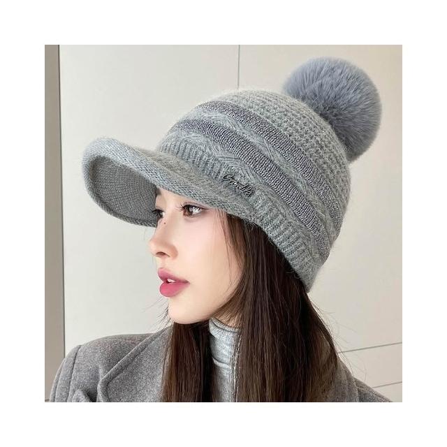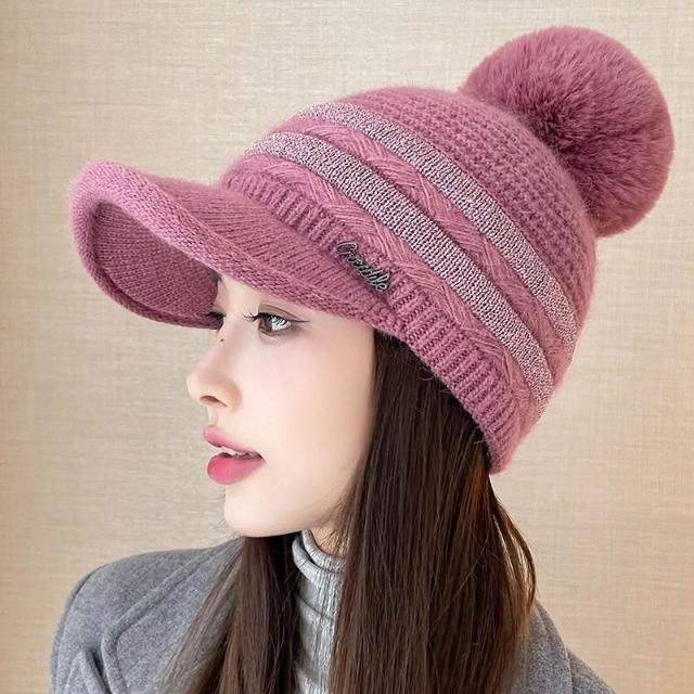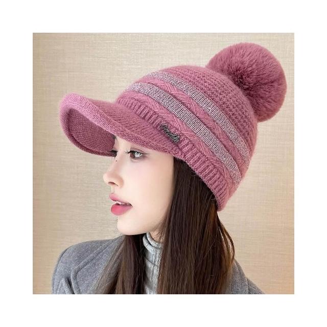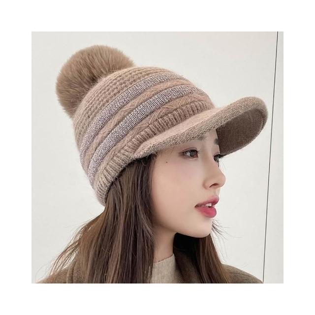 Imanchen冬天棒球帽兔毛帽子女冬天護耳加絨盆帽户外保暖針織帽 毛線帽 d0014