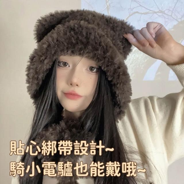 可愛小熊毛絨帽子女秋冬天騎車保暖護耳加厚百搭雷鋒帽防寒學生韓 毛綫帽 針織毛線帽 針織帽 小熊耳朵帽 日韓可愛