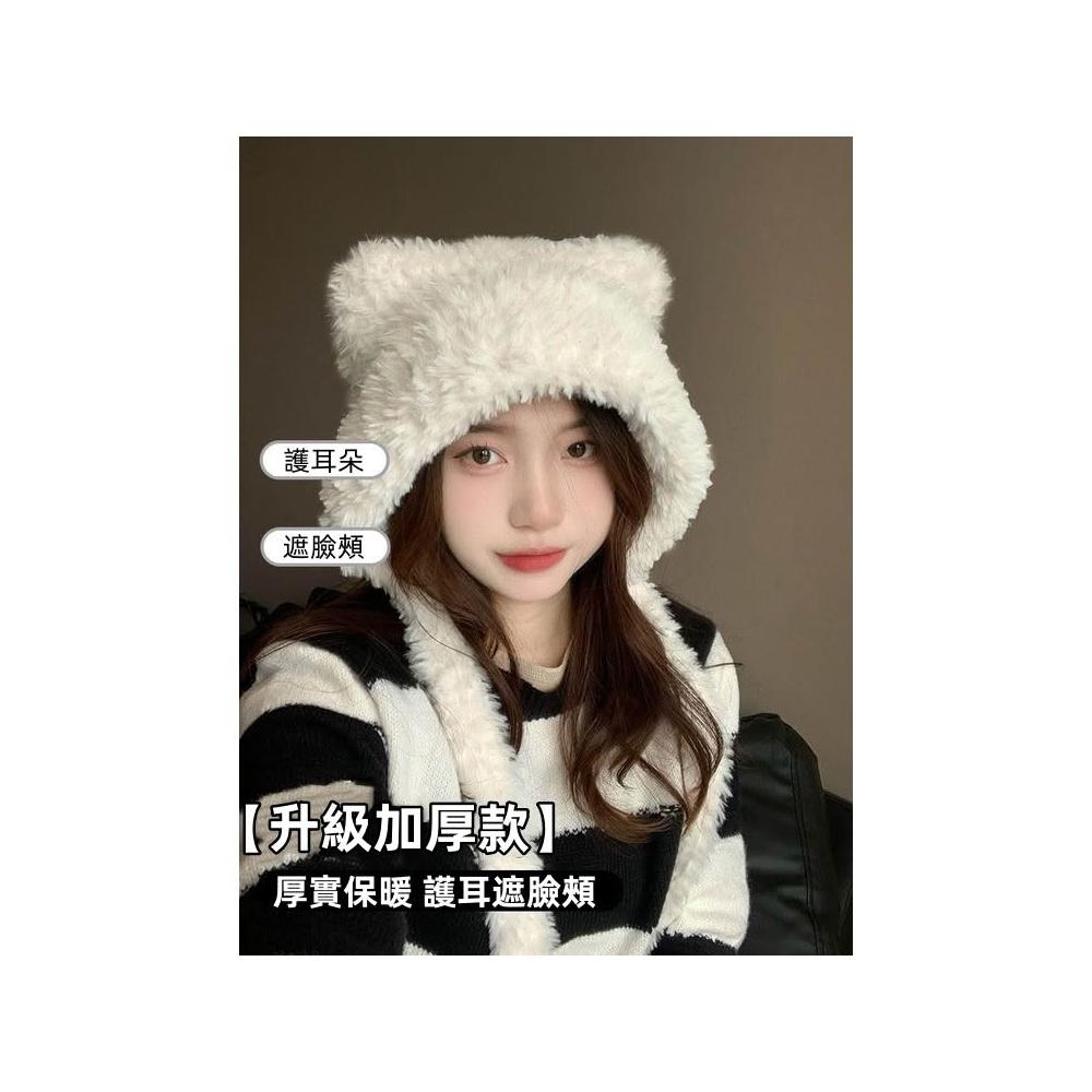 可愛小熊毛絨帽子女秋冬天騎車保暖護耳加厚百搭雷鋒帽防寒學生韓 毛綫帽 針織毛線帽 針織帽 小熊耳朵帽 日韓可愛