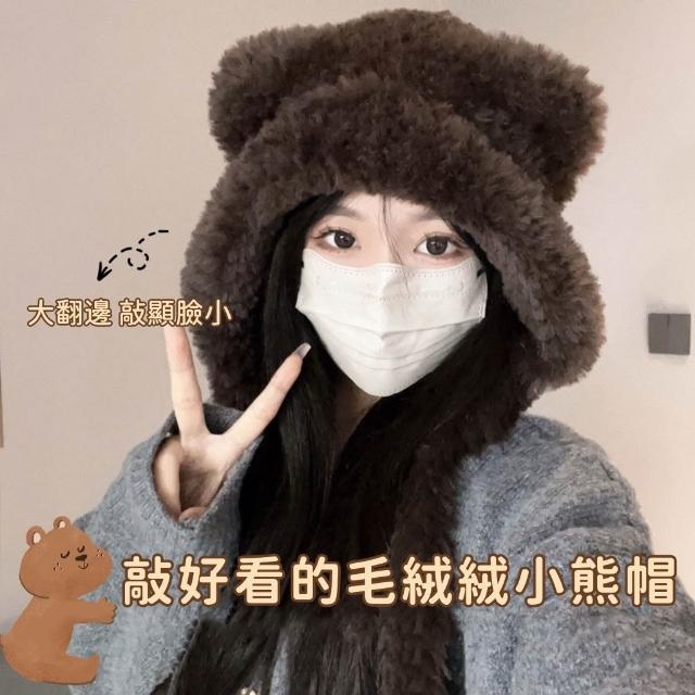 可愛小熊毛絨帽子女秋冬天騎車保暖護耳加厚百搭雷鋒帽防寒學生韓 毛綫帽 針織毛線帽 針織帽 小熊耳朵帽 日韓可愛