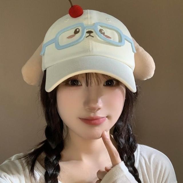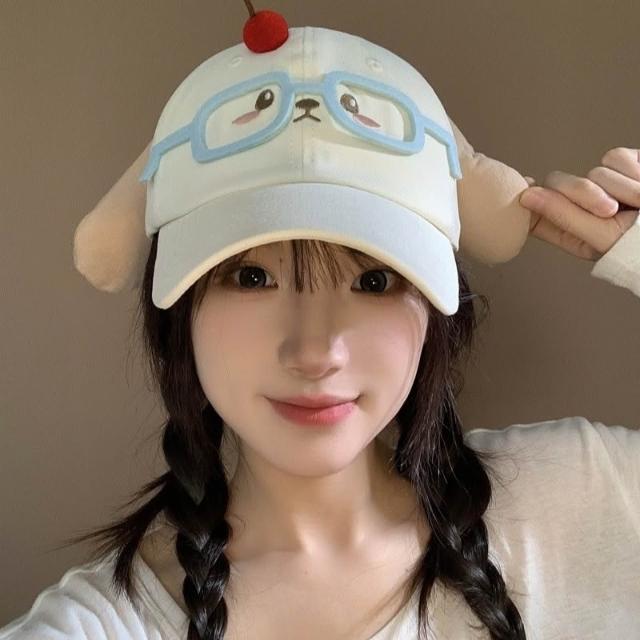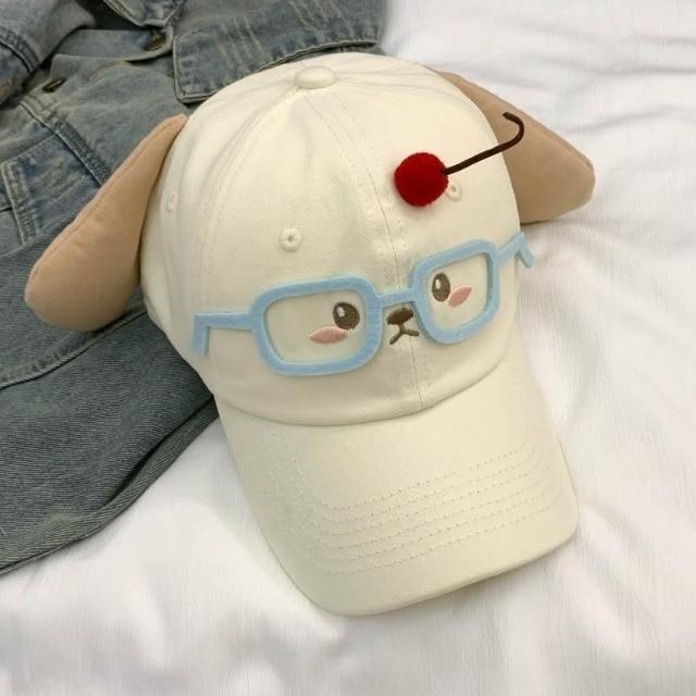 Imanchen大頭專屬可愛眼鏡櫻桃小狗棒球帽女