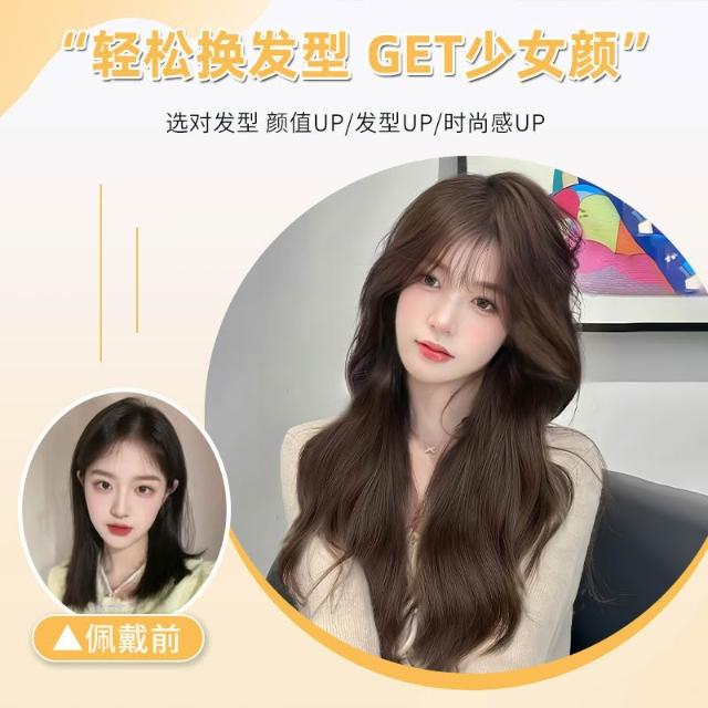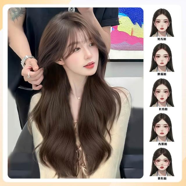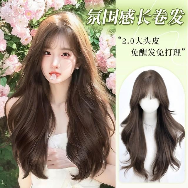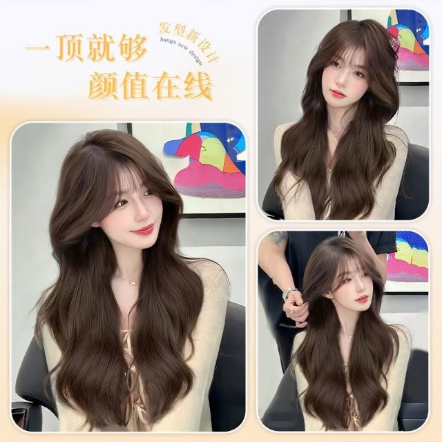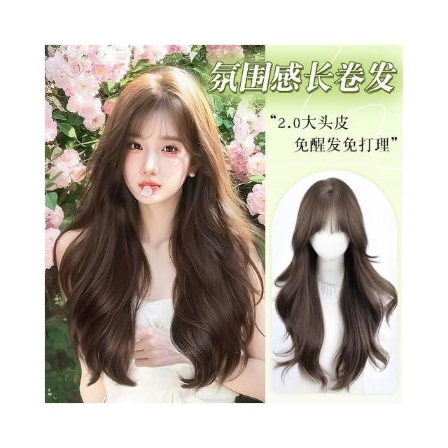 假髮女長髮榛果灰棕色空氣劉海長捲髮大波浪仿真髮自然全頭套