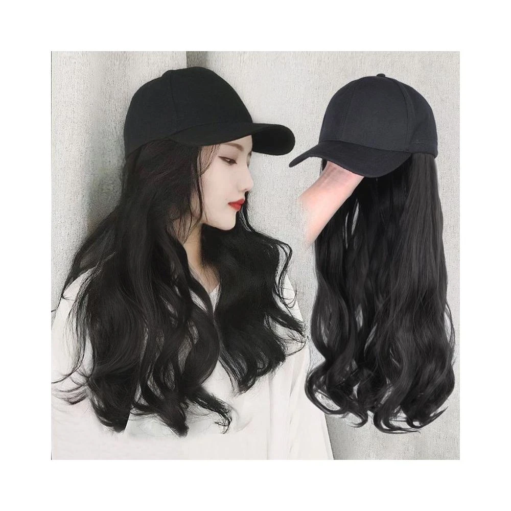 鴨舌帽連體假髮 假髮女長直髮全頭套式 長捲髮帶假頭髮帽子 帽子一體時尚髮套 假髮全頭套女 棒球帽假髮套 帽子假髮
