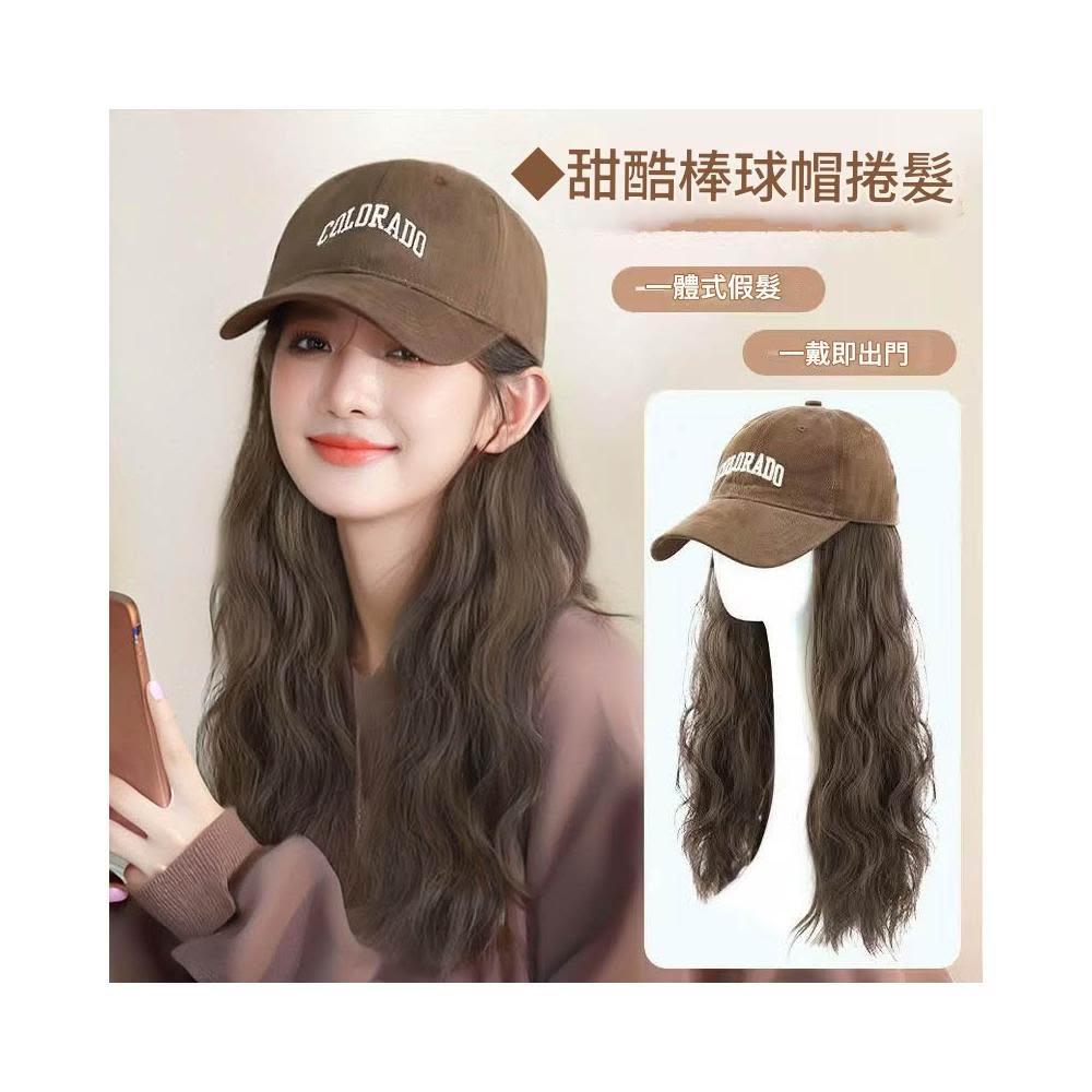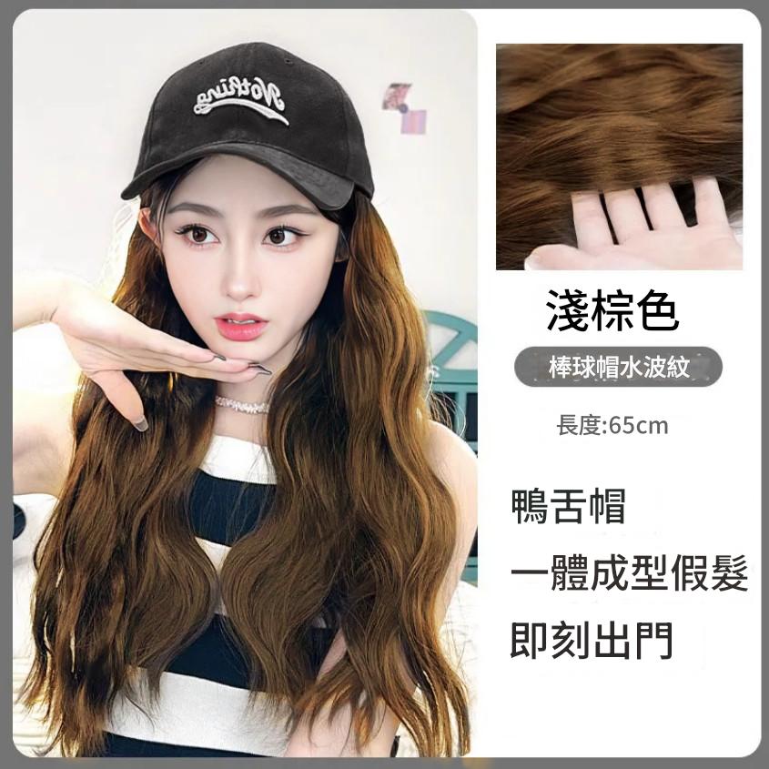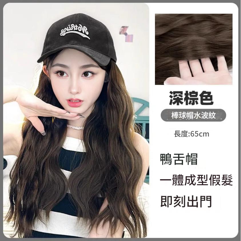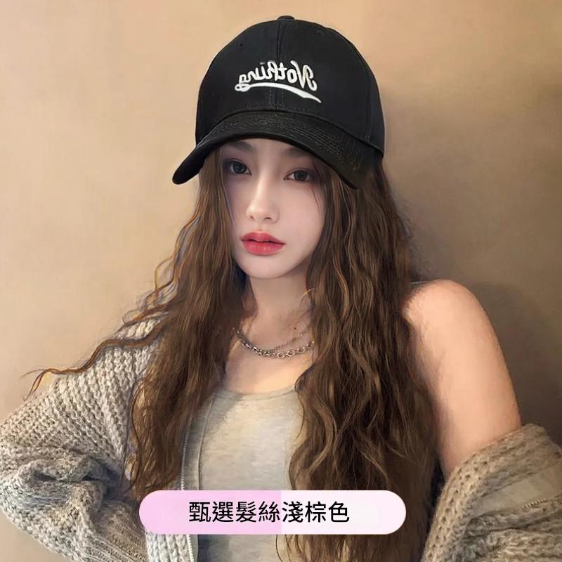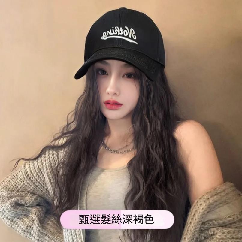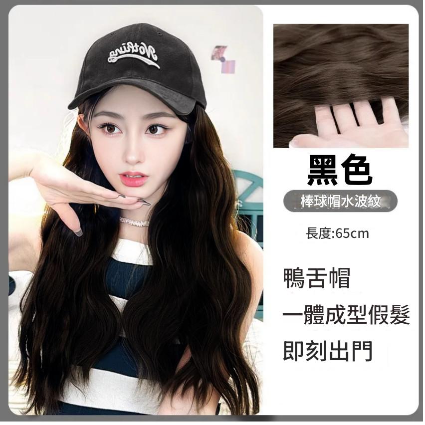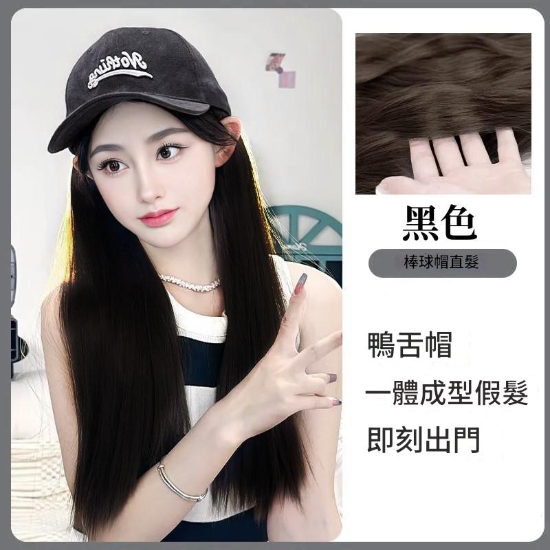 新款 鴨舌帽 帽子一體式假髮 長髮假髮 假髮帽子一體 時尚長直髮百搭仿真人髮絲全頭套式 時尚假髮帽 仿真假髮帽