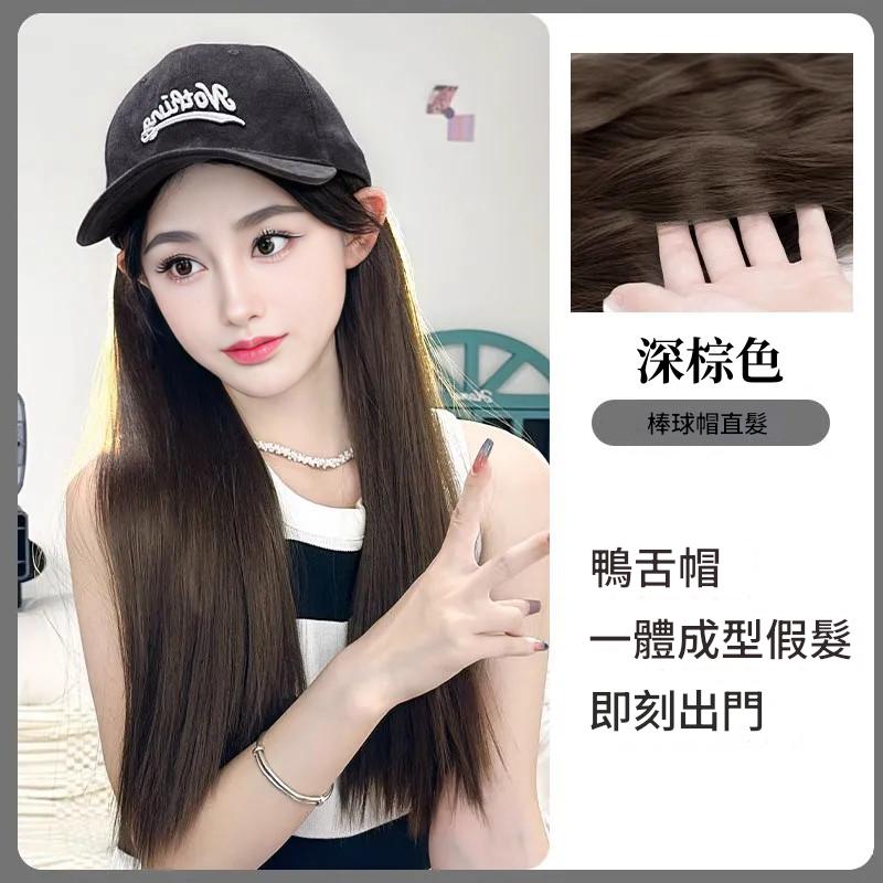 新款 鴨舌帽 帽子一體式假髮 長髮假髮 假髮帽子一體 時尚長直髮百搭仿真人髮絲全頭套式 時尚假髮帽 仿真假髮帽