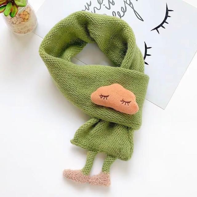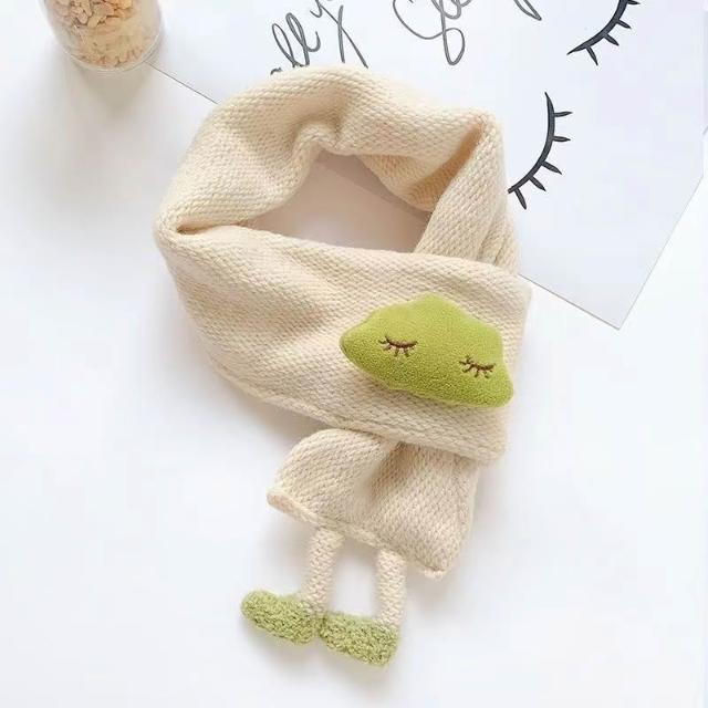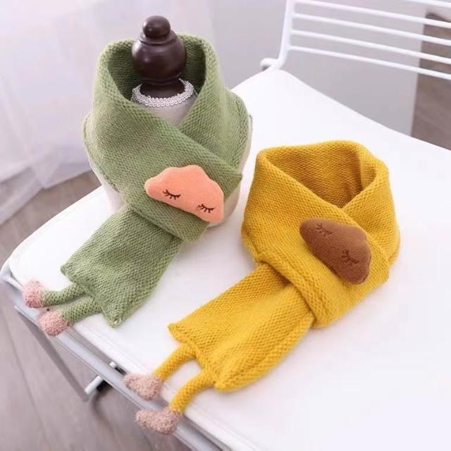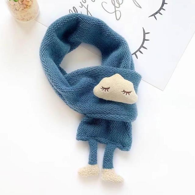 兒童圍巾寶寶雲朵秋冬男女童保暖圍脖可愛小腳丫毛線針織交叉圍脖