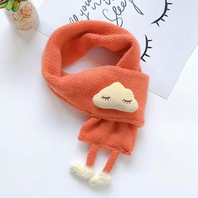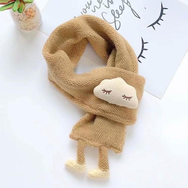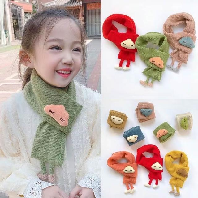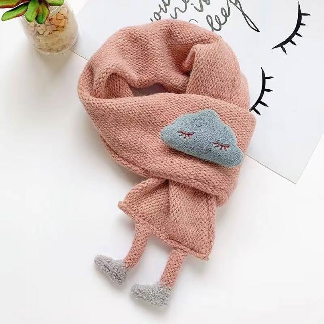兒童圍巾寶寶雲朵秋冬男女童保暖圍脖可愛小腳丫毛線針織交叉圍脖