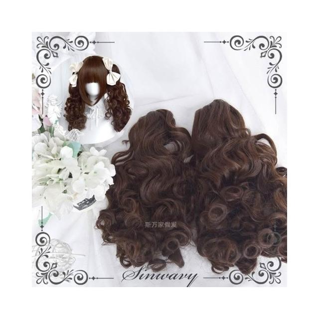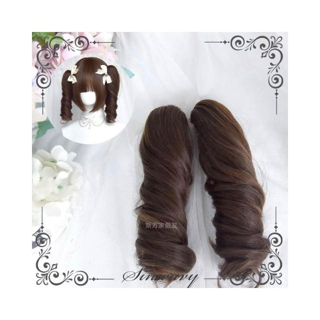 斯萬家-深棕色洛麗塔雙馬尾假髮可愛搭配虎口夾雙馬尾假髮閤集