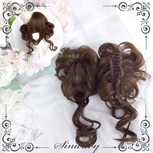 斯萬家-深棕色洛麗塔雙馬尾假髮可愛搭配虎口夾雙馬尾假髮閤集