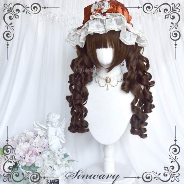 斯萬家-洛麗塔深棕色百搭古早優雅羅馬捲lo雙馬尾假髮-|韆層派|
