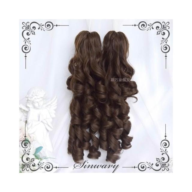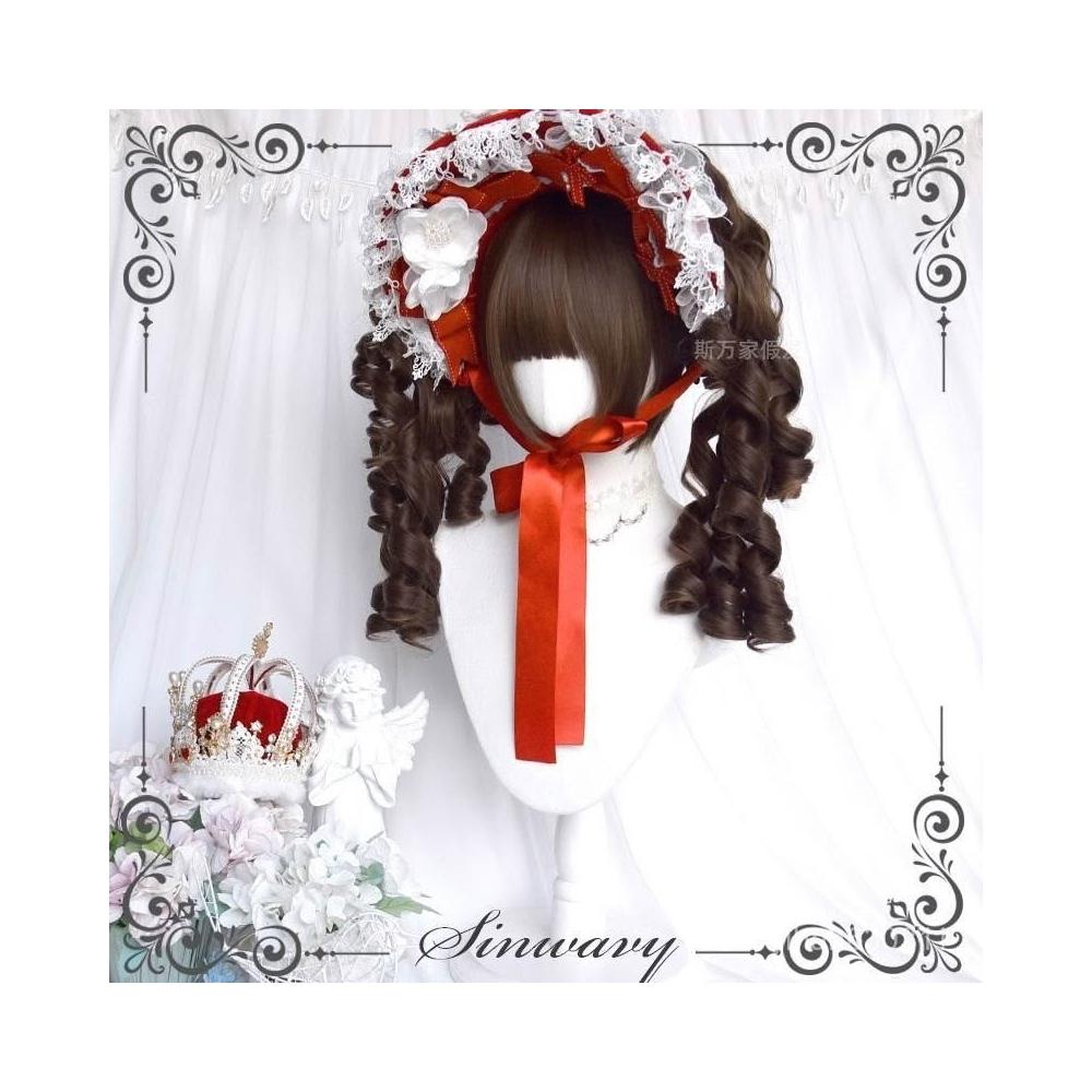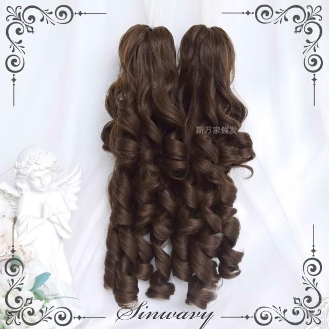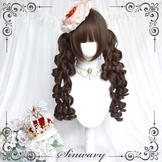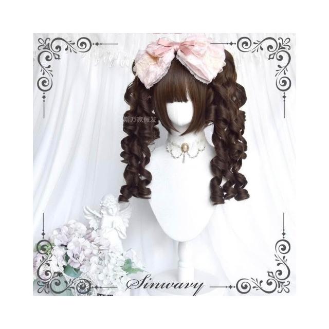 斯萬家-洛麗塔深棕色百搭古早優雅羅馬捲lo雙馬尾假髮-|韆層派|