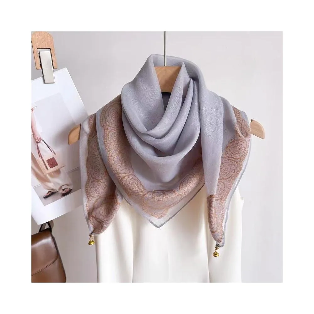 時尚新款玫瑰花紋印花線磁扣方巾 氣質絲巾懶人圍巾洋氣百搭