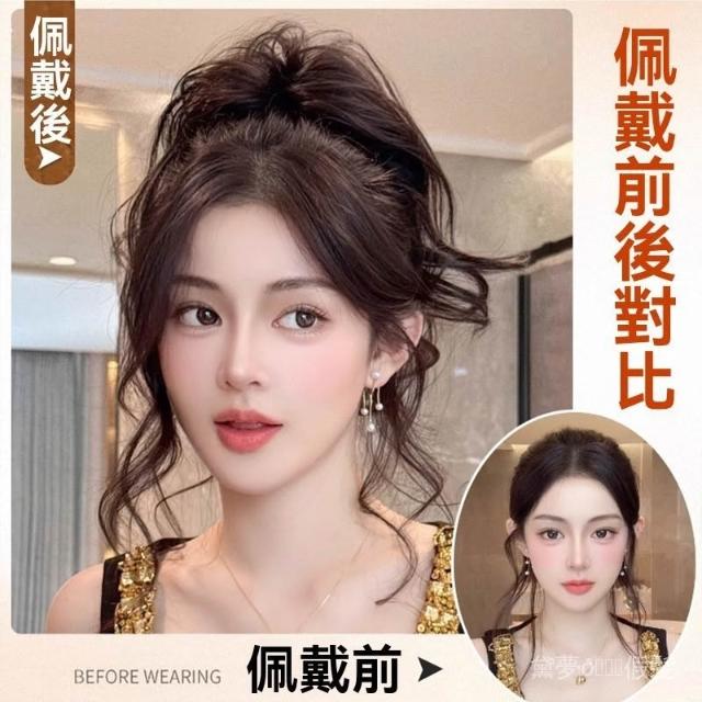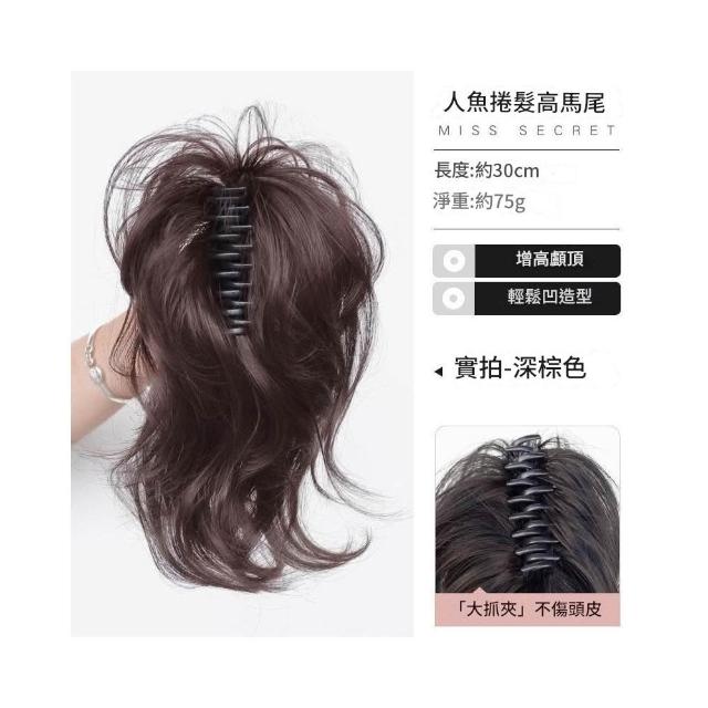 假髮馬尾 瀑布人魚捲 高顱頂 增髮 抓夾款馬尾 盤髮神器 蓬鬆短假髮辮子 仿真 自然 蓬鬆 減齡 韓妞髮型 透氣